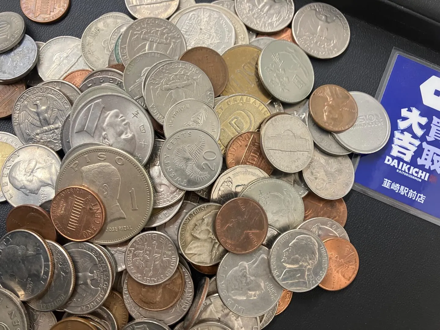 アメリカの1セントやクォーター、フィリピンペソなど、さまざまな国のコインがずらり🪙✨
